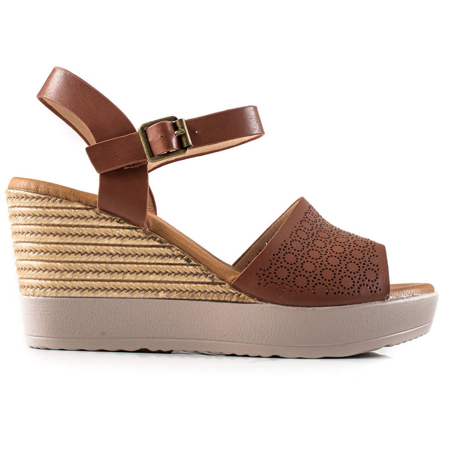 Clowse Clowse Lekkie Sandałki Na Koturnie brązowe