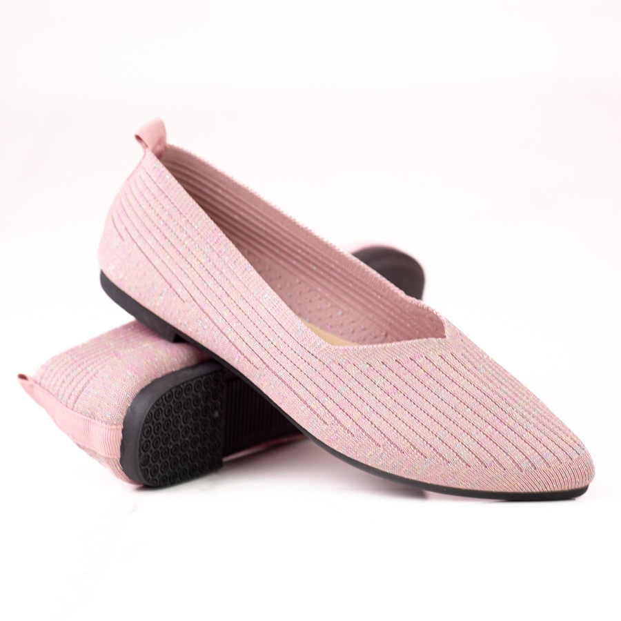 W. Potocki W. Potocki Materiałowe baleriny damskie Potocki z brokatem różowe