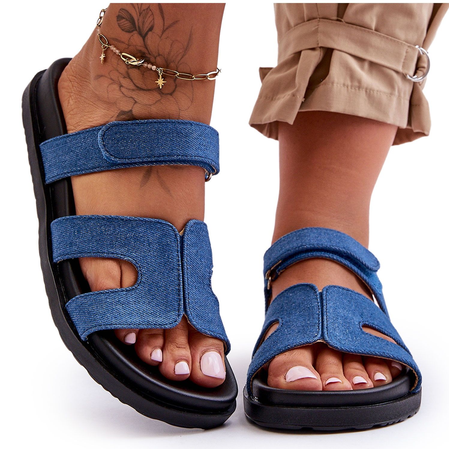 Szczegóły: Materiałowe Damskie Klapki Na Rzep Ciemnoniebieskie Jose