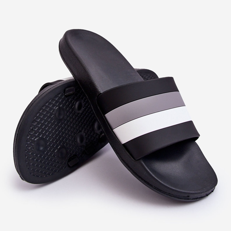 WJ1 WJ1 Męskie Klapki W Paski Czarne Vision