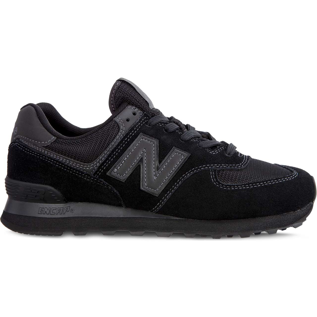 Kod produktu ML574ETE — klasyka New Balance w nowoczesnym, całkowicie czarnym wydaniu.