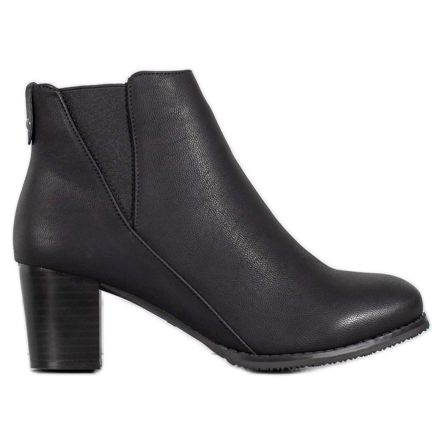 Przedstawiamy modne czarne botki damskie marki J. Star, które stanowią doskonały wybór na chłodniejsze dni. Wykonane z wysokiej jakości ekologicznej skóry, te eleganckie buty łączą styl z komfortem w każdej sytuacji. Stabilny obcas typu słupek o wysokości 6,5 cm zapewnia wygodę podczas codziennego noszenia, a cholewki sięgające za kostkę dodają klasy i szyku.