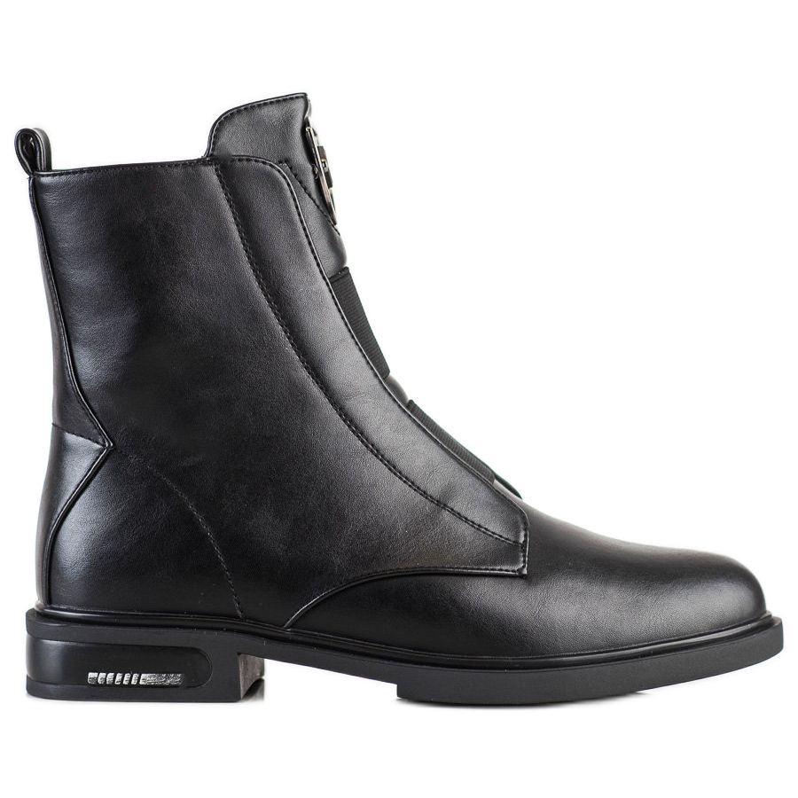 Botki zostały zaprojektowane w casualowym stylu, co sprawia, że doskonale komponują się z różnymi codziennymi stylizacjami. Płaski obcas o wysokości 2,5 cm oraz syntetyczna podeszwa z bieżnikiem gwarantują stabilność i przyczepność na różnych nawierzchniach. Wysokość cholewki sięgająca 15 cm oraz szerokość 22 cm sprawiają, że botki dobrze dopasowują się do nogi, a ich zapięcie na zamek ułatwia zakładanie i zdejmowanie.