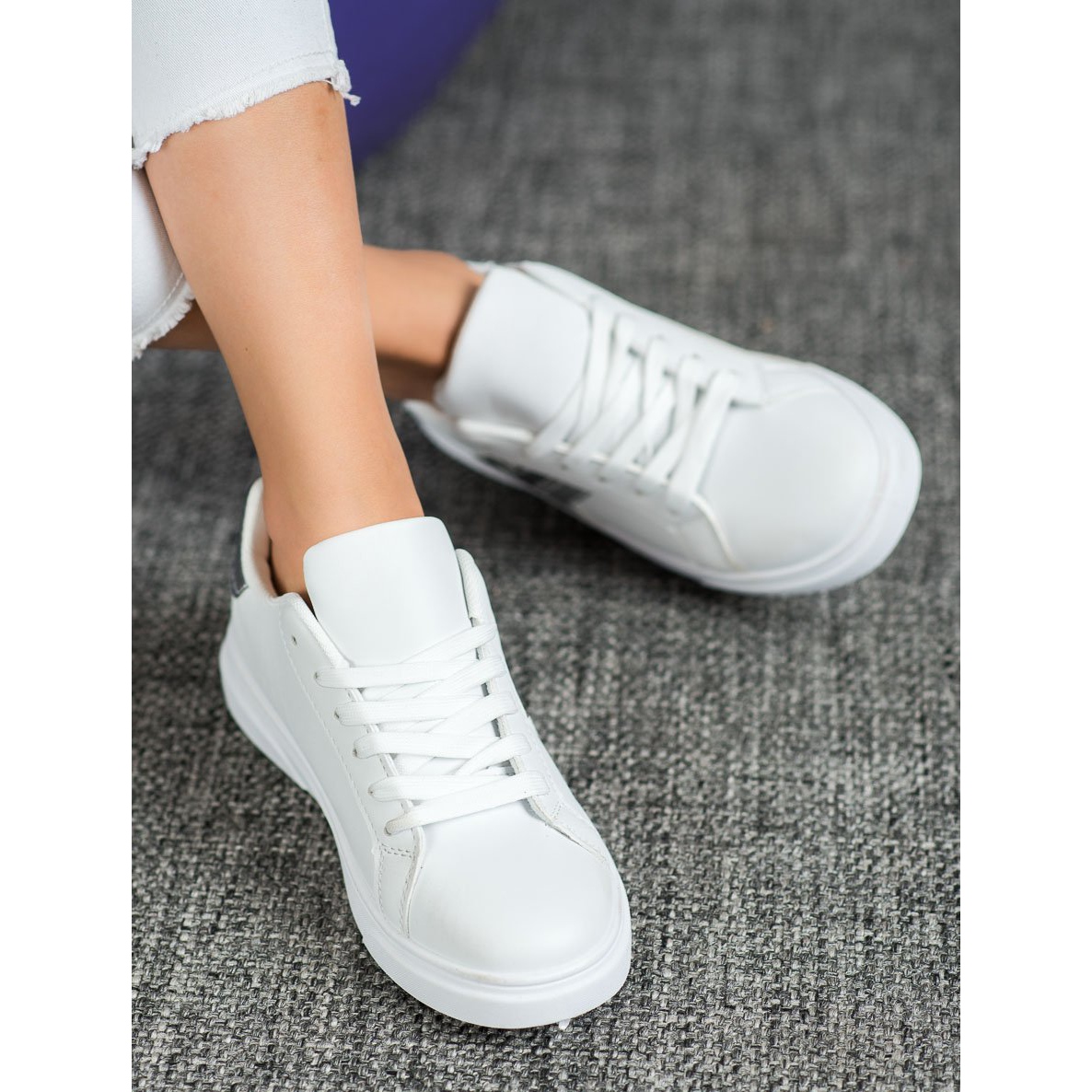 Szczegóły: SHELOVET Modne Buty Z Eko Skóry białe szare