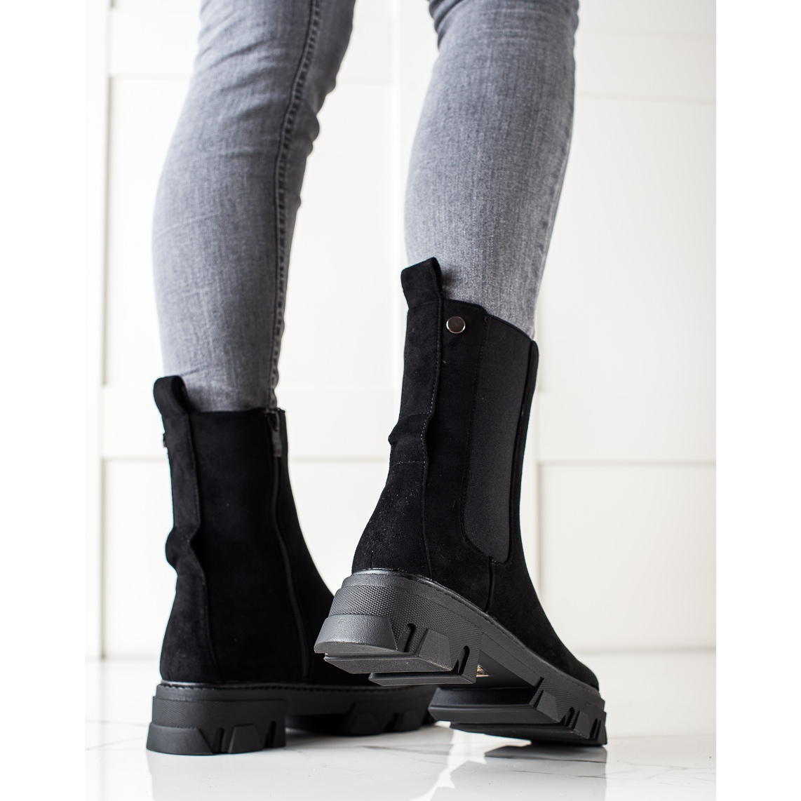 **Sweet Shoes Modne Czarne Botki Na Platformie**