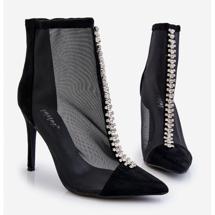 Inna marka Modne Damskie Botki Na Szpilce Z Siateczką Czarne Rummi