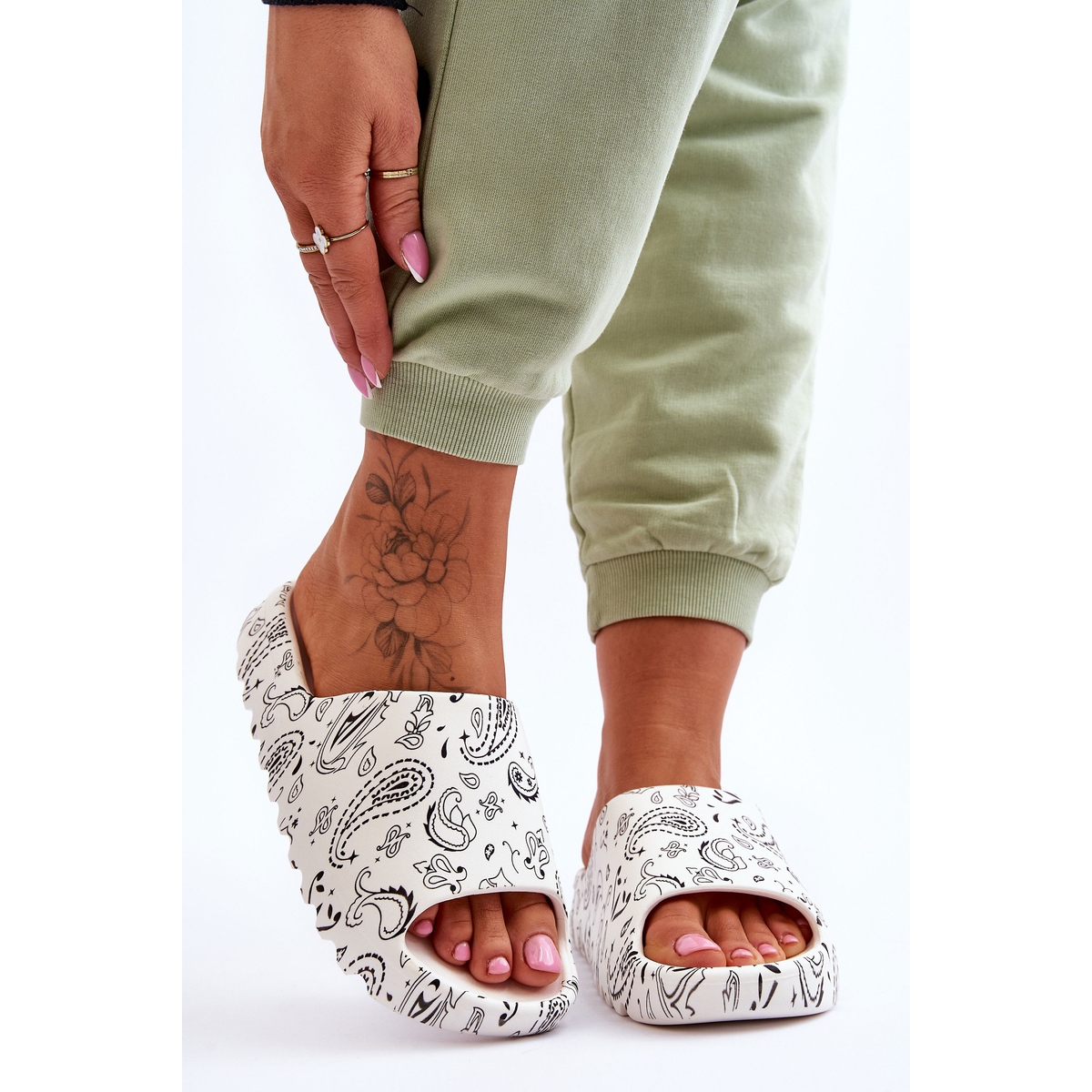 Designerski sznyt tego obuwia objawia się poprzez modny, szeroki pasek oraz oryginalny nadruk na zewnętrznej stronie, dodając elegancji przy każdym kroku. Mix wzorów podkreśla niebanalny charakter klapków, czyniąc je idealnym wyborem dla kobiet, które chcą wyróżnić się z tłumu.