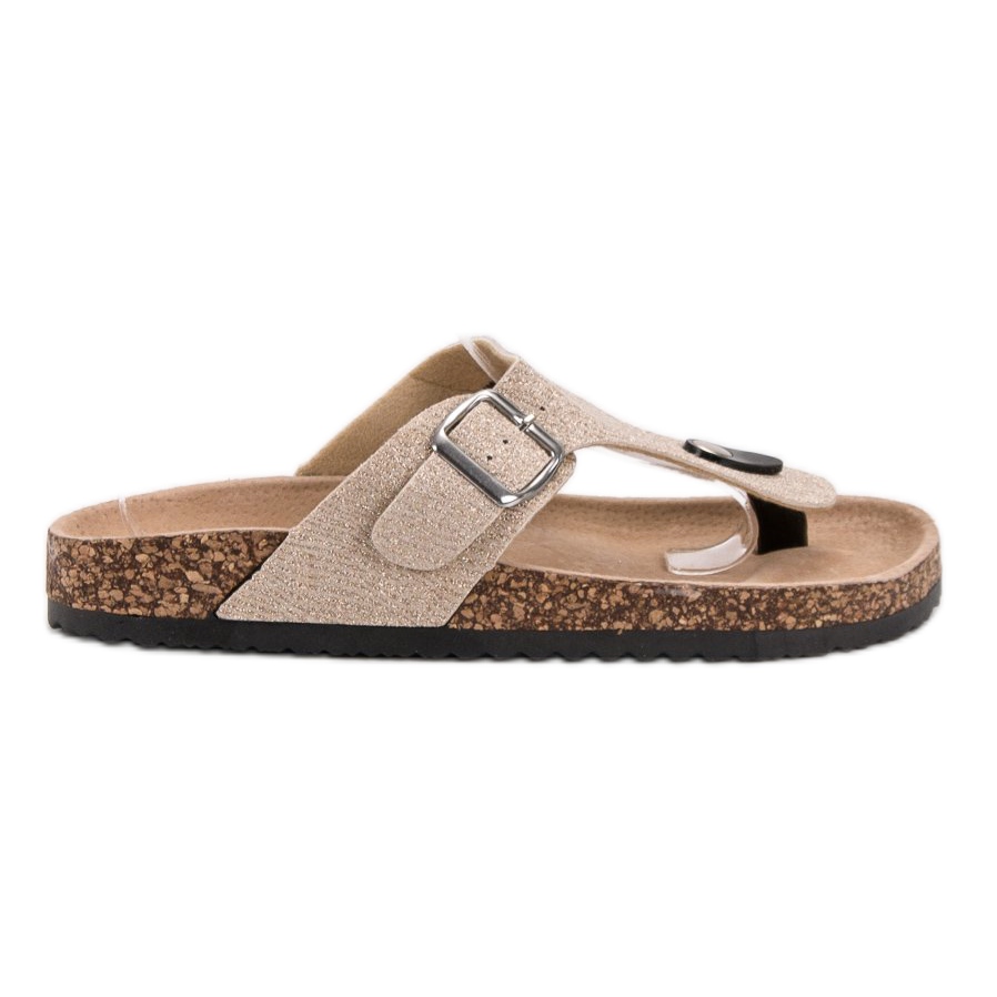 Brązowe japonki Evento to idealny wybór na co dzień, zarówno na spacer po plaży, jak i na letnie zakupy. Podeszwa z bieżnikiem, wykonana z tworzywa sztucznego, zapewnia odpowiednią przyczepność, a tkaninowe wykończenie wkładki gwarantuje miękkość i komfort noszenia. Kategoria ButyModne wprowadza odrobinę luksusu do codziennego stylu, a brokatowy wzór dodaje im subtelnego blasku.