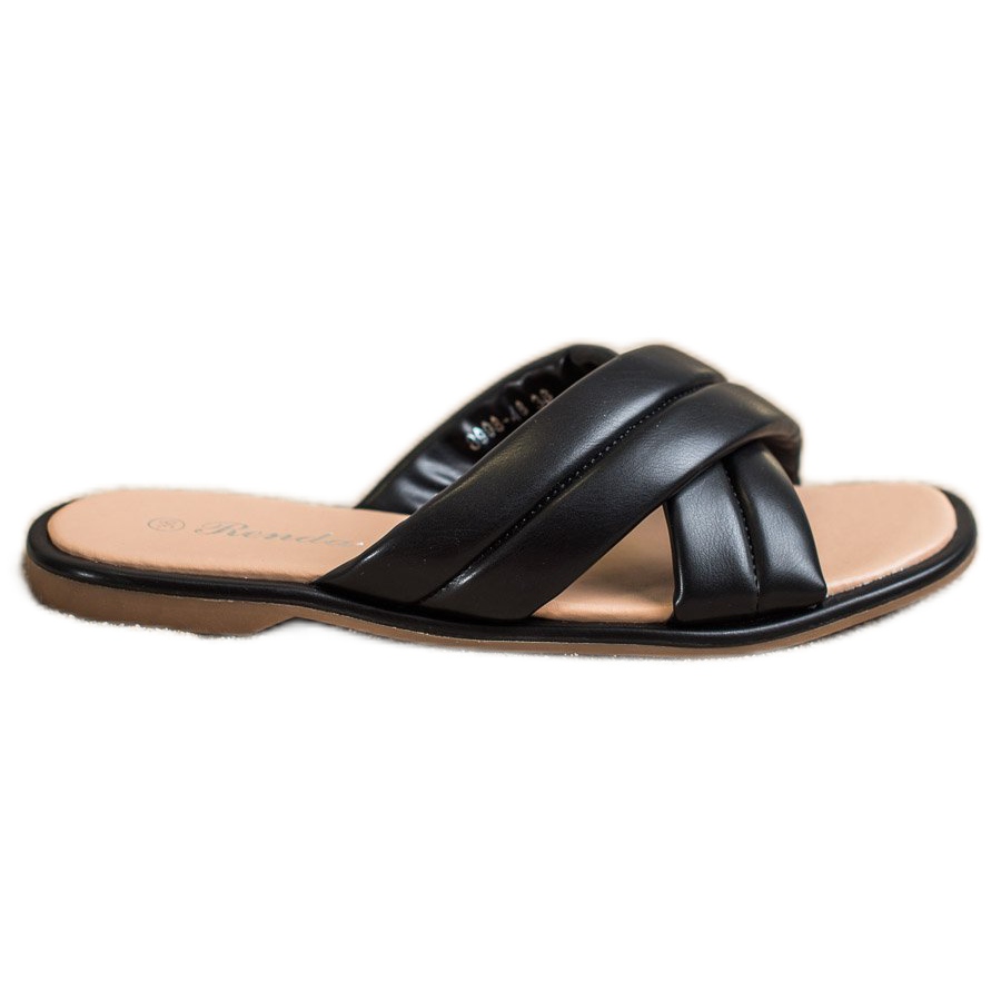 Renda Renda Modne Klapki Z Eko Skóry czarne