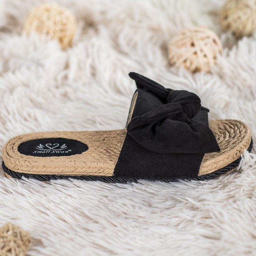 Szczegóły: Small Swan Modne Klapki Z Kokardą czarne
