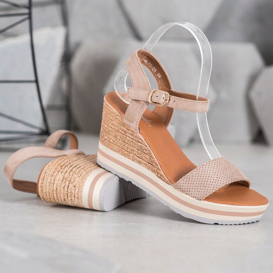 Szczegóły: Weide Modne Koturny Z Zamszu beżowy