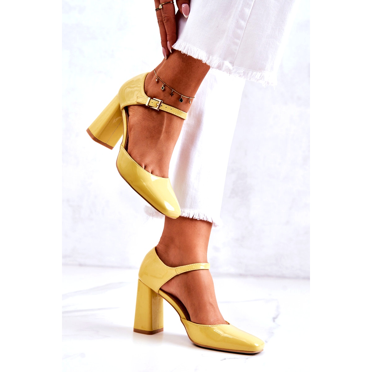 PG1 PG1 Modne Lakierowane Czółenka Na Słupku Żółte Maoris