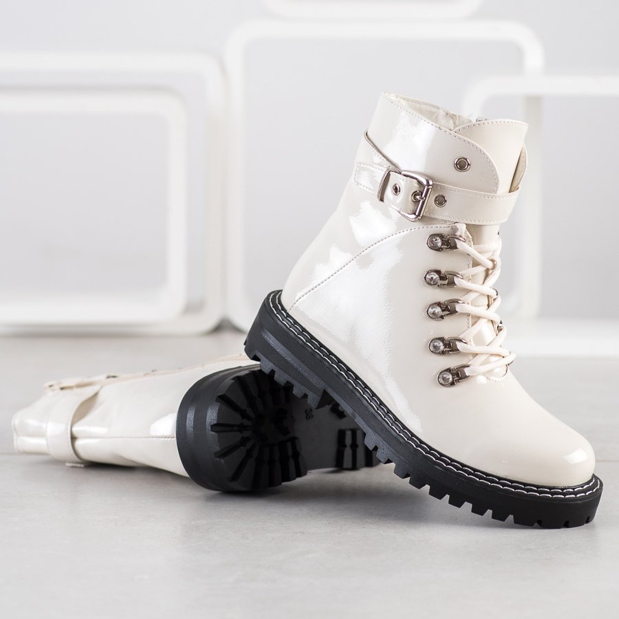 Szczegóły: SDS Modne Lakierowane Traperki białe