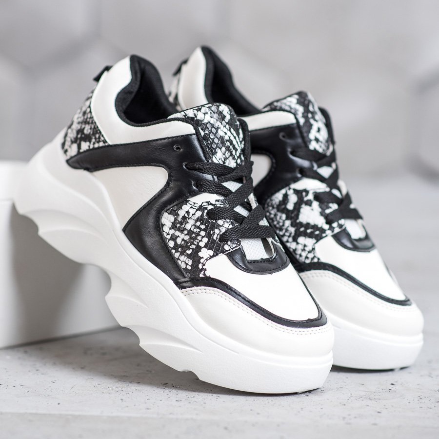 Szczegóły: Weide Modne Sneakersy Z Eko Skóry białe czarne