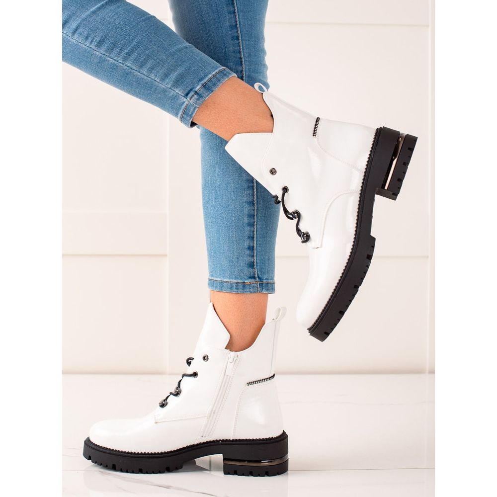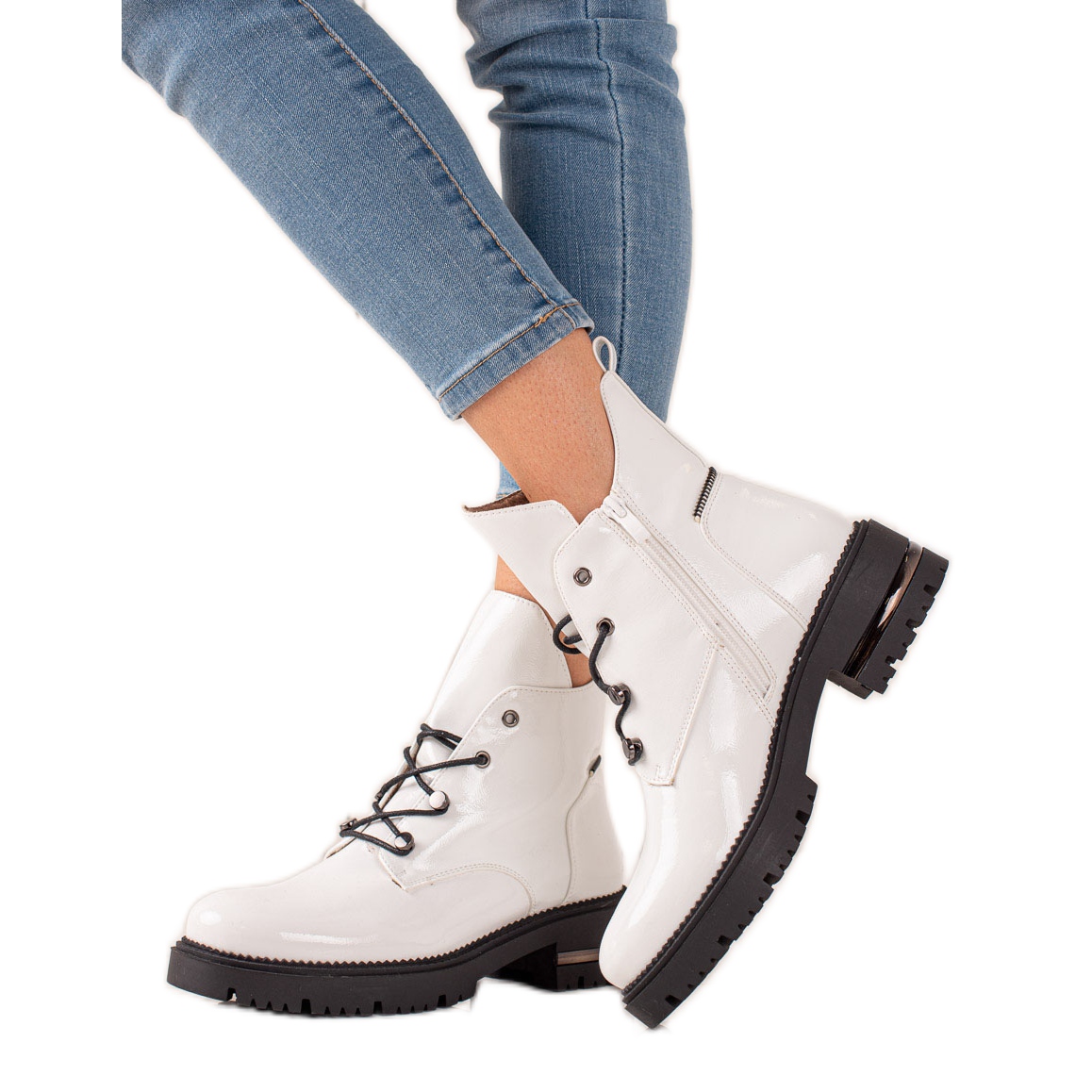 Szczegóły: Modne Sznurowane Workery Sergio Leone białe