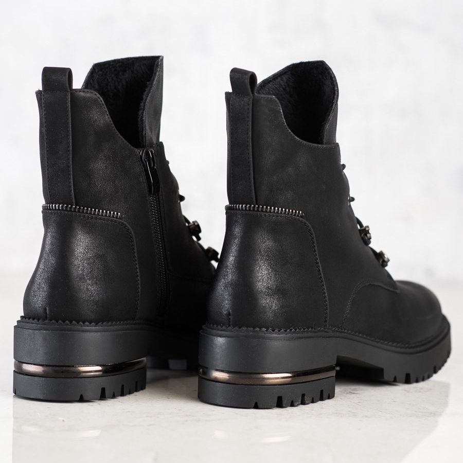 Dostępne w modnym bezwzoru czarnym kolorze, będą doskonałym uzupełnieniem każdej garderoby. Wysokość cholewki wynosząca 15 cm sięga za kostkę, co dodaje im charakteru. Dodatkowe atuty to praktyczne zapięcie na zamek oraz sznurowane wiązania, które umożliwiają idealne dopasowanie do stopy.