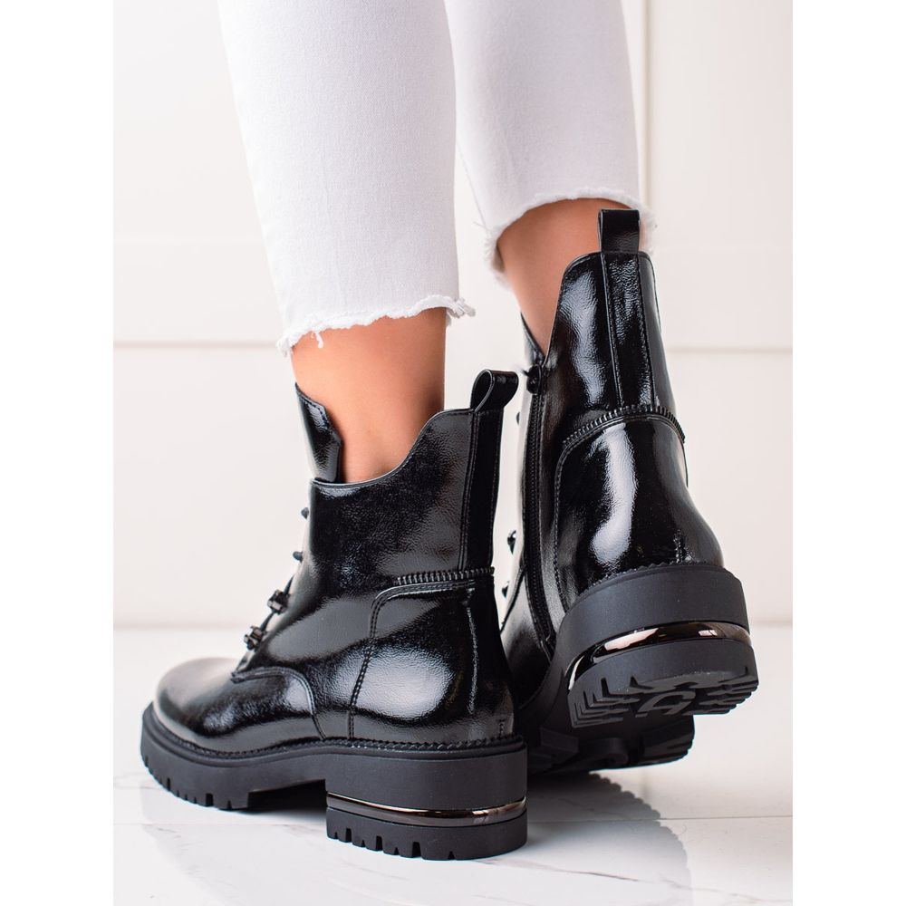 Szczegóły: Modne Sznurowane Workery Sergio Leone czarne