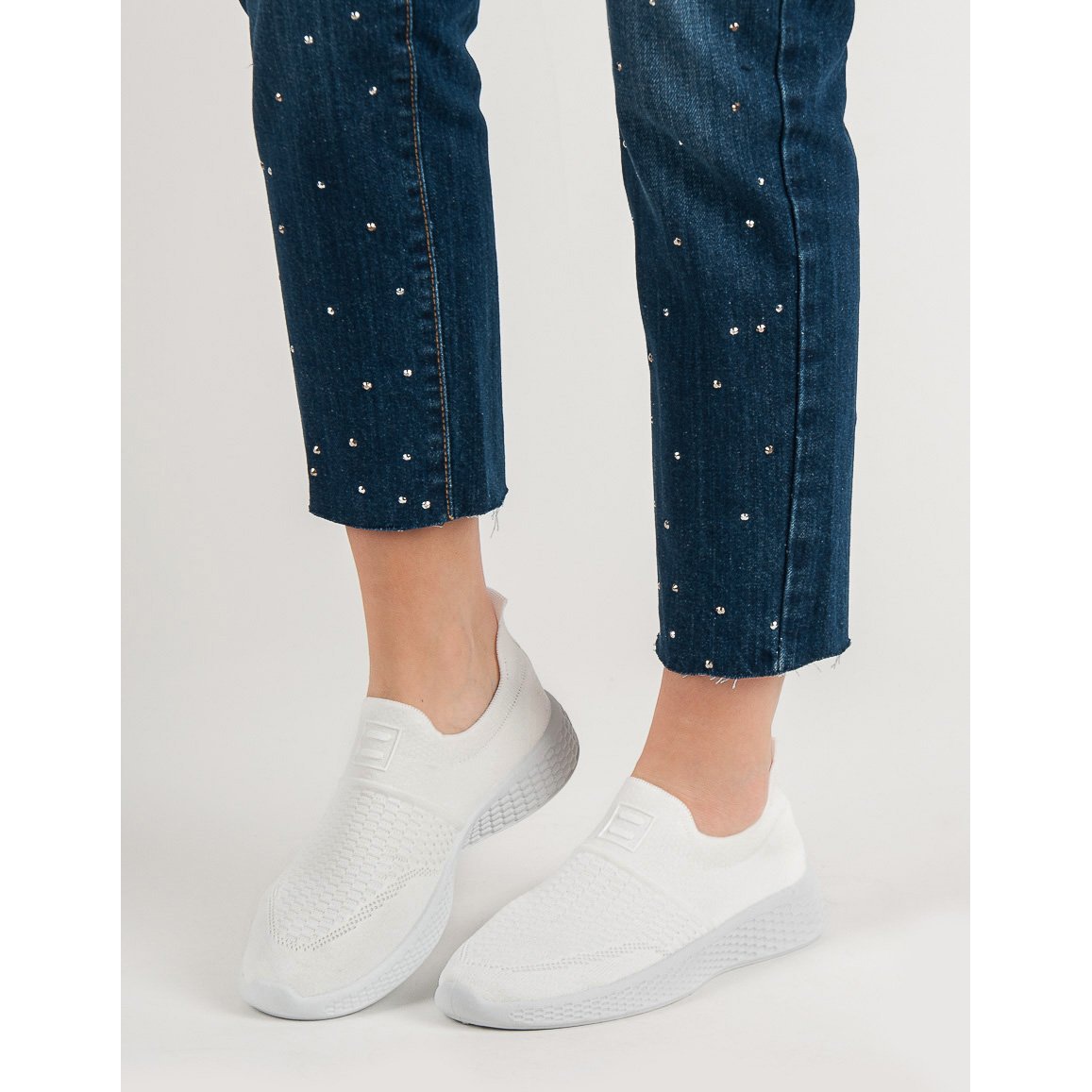 Szczegóły: Weide Modne Tekstylne Obuwie białe