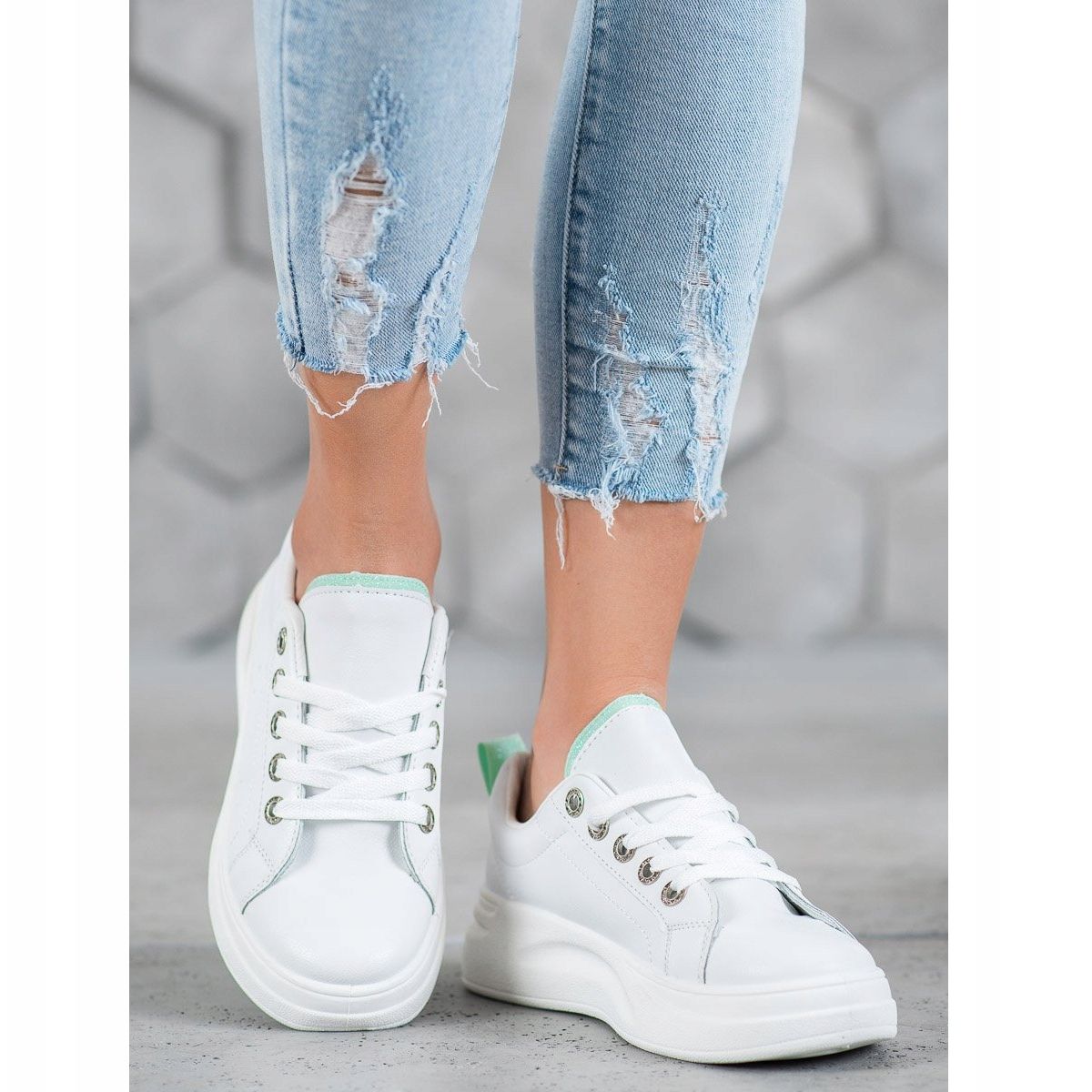 Szczegóły: SHELOVET Modne Trampki Na Platformie białe