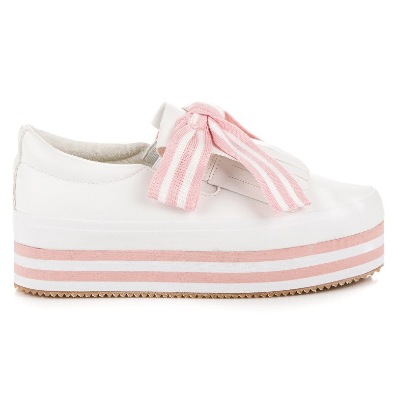 Przedstawiamy modne trampki VICES w wyjątkowym biało-różowym kolorze, które doskonale łączą sportowy styl z elegancją. Te oryginalne buty na wysokiej platformie (5 cm) nie tylko dodają centymetrów, ale również fantastycznie wydłużają nogi, co sprawia, że każda kobieta poczuje się w nich zjawiskowo.