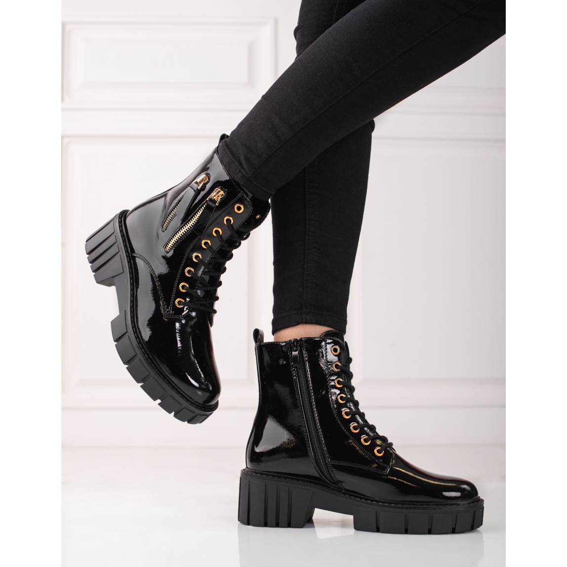 Goodin Goodin Modne traperki z ozdobnymi suwakami czarne