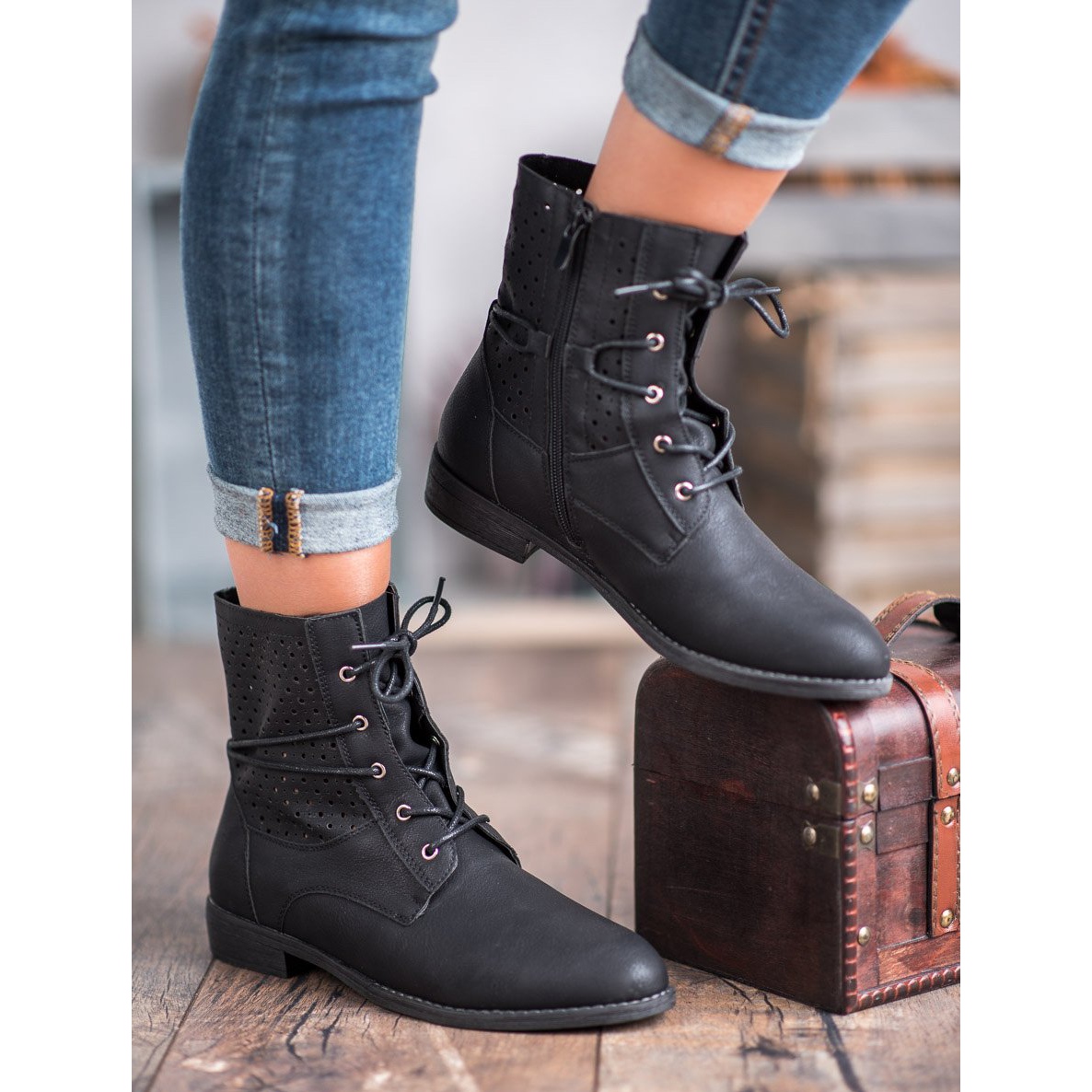 Groto Gogo Groto Gogo Modne Wiązane Botki czarne