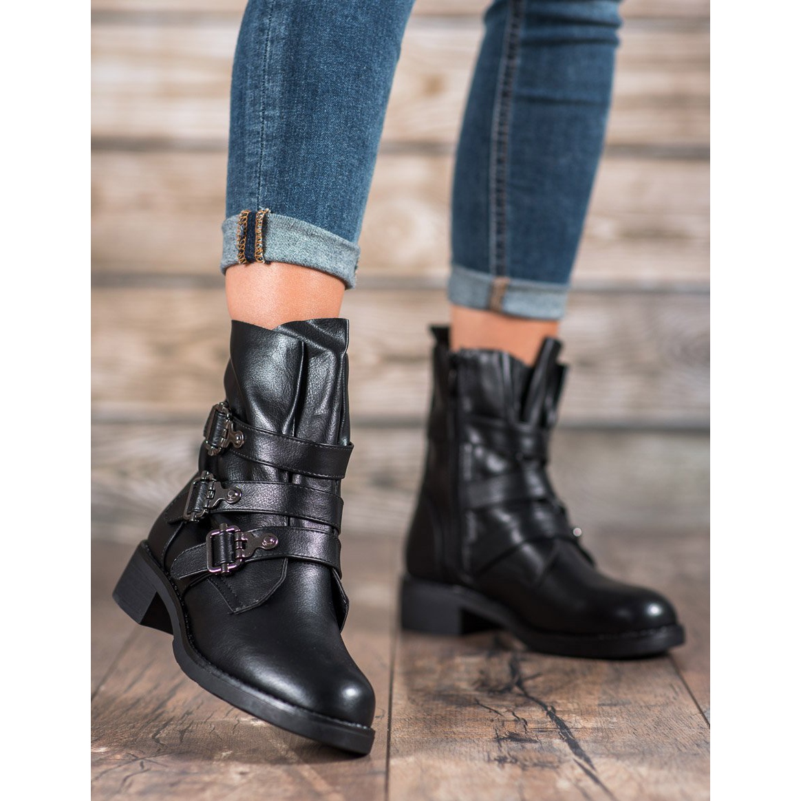 Ich nietypowa cholewka oraz ozdobne paski z klamrami nadają im oryginalny charakter, dzięki czemu doskonale wpisują się w różnorodne stylizacje. Będą idealnym dopełnieniem zarówno casualowych, jak i rockowych outfitów, sprawdzając się w sezonie jesień/zima.