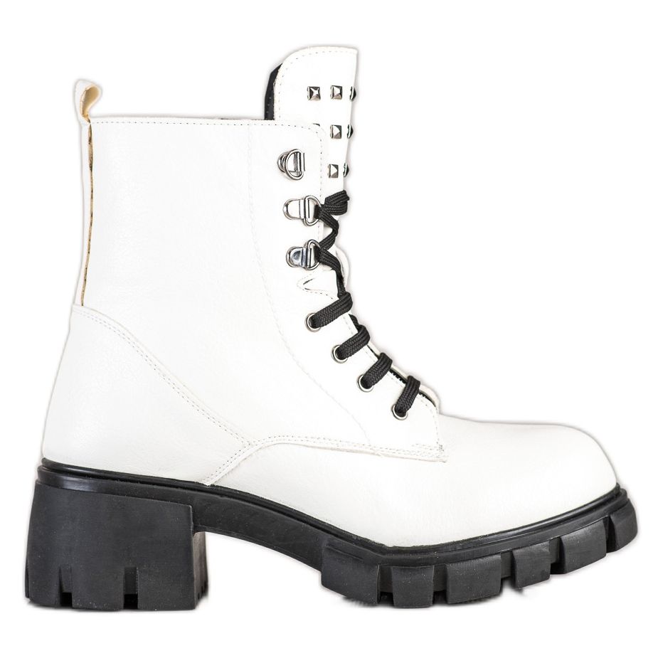 SHELOVET SHELOVET Modne Workery Z Ćwiekami białe