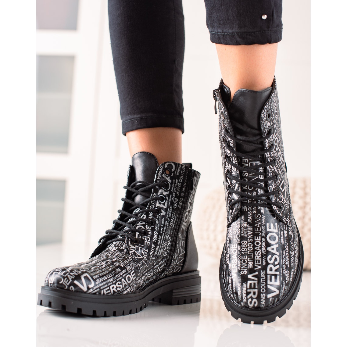 Stylowe workery Goodin w uniwersalnej czerni łączą rockowy charakter z komfortem na co dzień. Cholewka z ekologicznej skóry ozdobiona nadrukiem z napisami nadaje im modny, miejski wygląd. Krótka wysokość za kostkę i miękki, zabudowany zapiętek zapewniają stabilność, a futerkowa wkładka i ocieplenie sprawdzą się w sezonie jesień/zima.