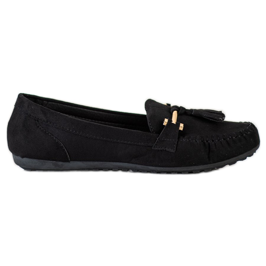 Szczegóły: Queentina Modne Zamszowe Mokasyny czarne złoty
