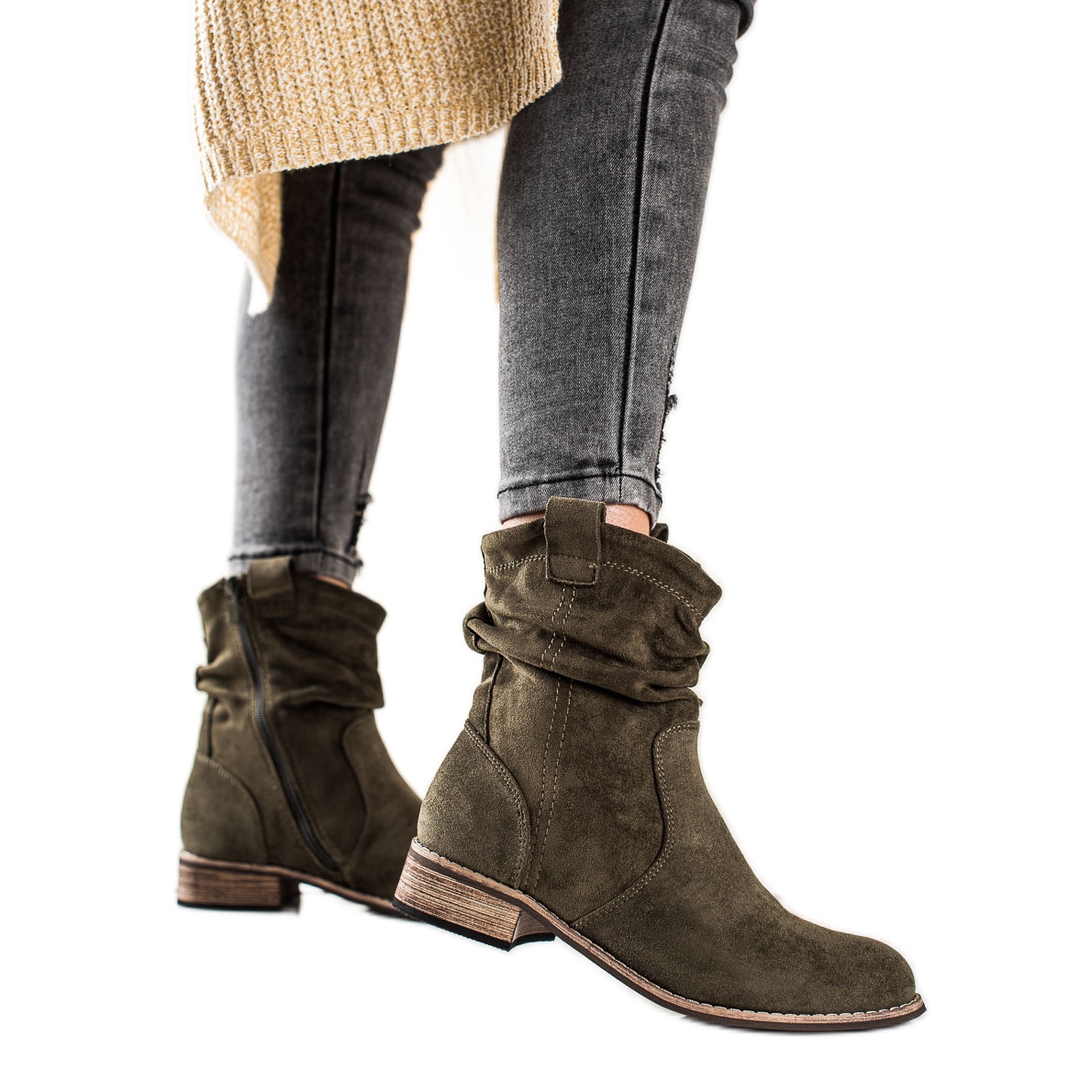 Przedstawiamy eleganckie i stylowe kowbojki Eventu, które doskonale wpisują się w modowe trendy sezonu jesień/zima. Te modne zielone botki to idealny wybór dla kobiet, które cenią sobie komfort oraz oryginalny design. Wykonane z ekologicznej skóry zamszowej, prezentują się niezwykle atrakcyjnie, a ich okrągły nosek zapewnia wygodę noszenia.
