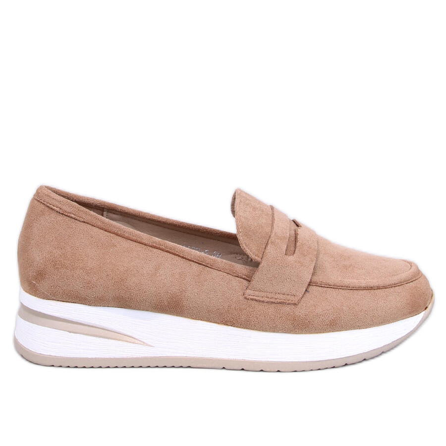 Szczegóły: Mokasyny Damskie na koturnie camelowe brązowe
