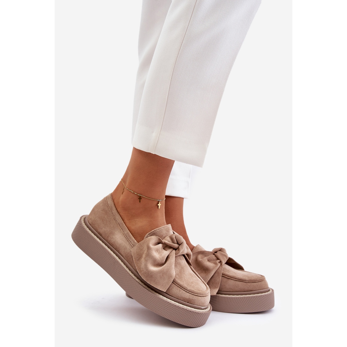 Szczegóły: Mokasyny Damskie Na Platformie Z Kokardą Beżowe Naivine beżowy