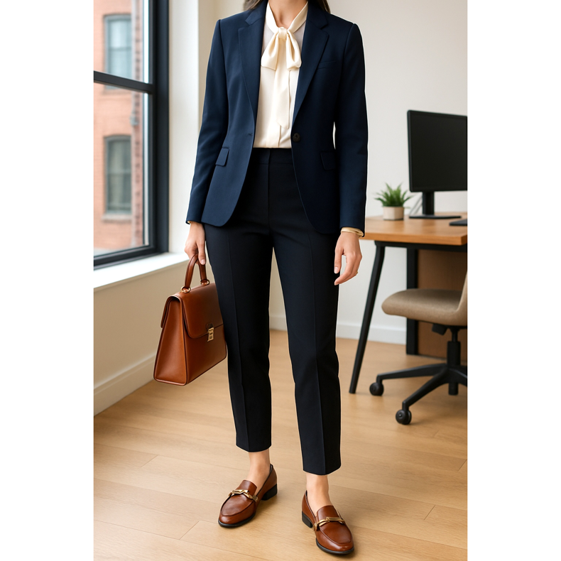 W bardziej kreatywnych branżach możesz pozwolić sobie na większą swobodę. Mokasyny z ozdobnymi klamrami lub w nietypowych kolorach świetnie komponują się z kulotami, bluzką z wiązaniem przy szyi i marynarką o niestandardowym kroju. Taki strój pokazuje, że jesteś na bieżąco z trendami, jednocześnie zachowując odpowiedni poziom elegancji wymagany w miejscu pracy. Pamiętaj, by mokasyny były zawsze czyste i zadbane, niezależnie od tego, jak swobodny jest dress code w twojej firmie.