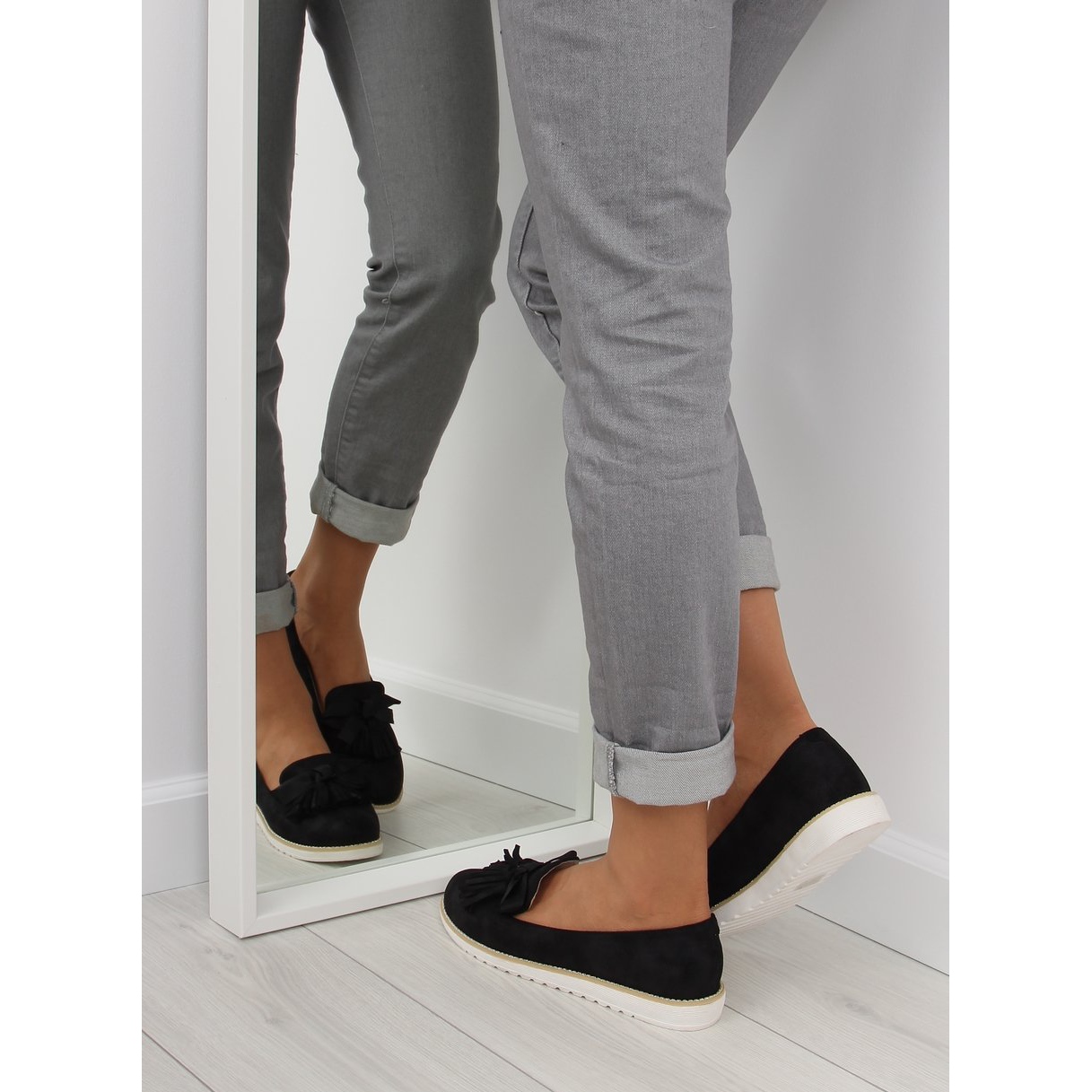 Inna marka Mokasyny damskie z frędzelkami czarne 7214 Black
