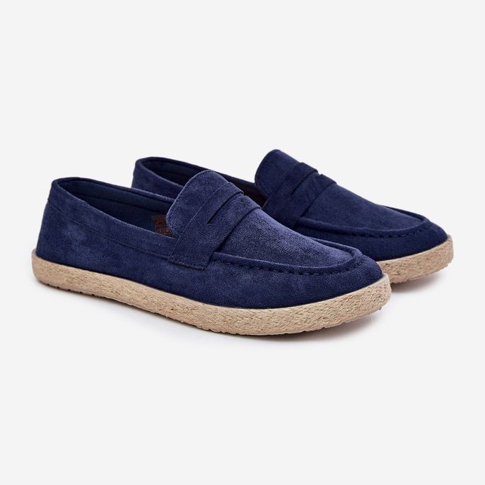 Mokasyny Męskie z Plecionką w Granatowym Odcieniu