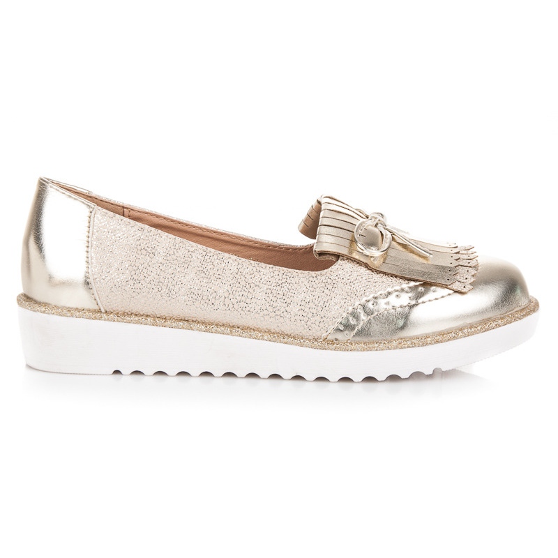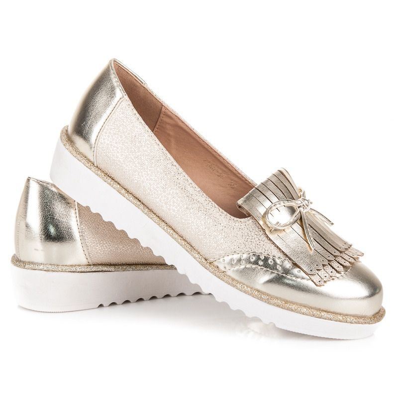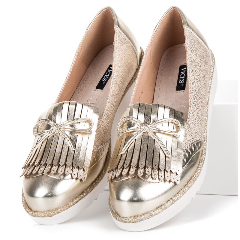 Złote akcenty w połączeniu z żółtym kolorem tworzą unikalny i przyciągający wzrok efekt, który z pewnością wyróżni Cię z tłumu. Mokasyny Vices to perfekcyjny dodatek do letnich sukienek, spodni czy spódnic, które wprowadzą odrobinę świeżości do każdej stylizacji. Wybierz wygodę i styl dzięki mokasynom na platformie od Vices!