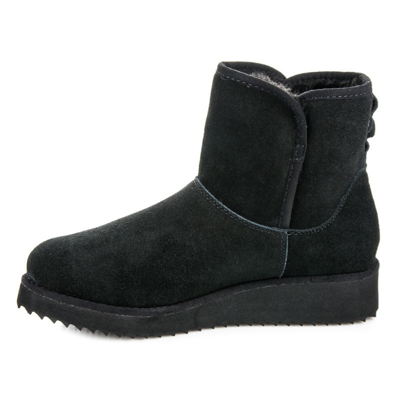 Mukluki sięgają za kostkę, co zapewnia dodatkowe ocieplenie, idealne na chłodniejsze dni. Dzięki wsuwanemu zapięciu, zakładanie i zdejmowanie butów staje się szybkie i wygodne. Czarne, minimalistyczne wzornictwo sprawia, że łatwo je dopasować do różnych stylizacji – od casualowych po bardziej eleganckie.