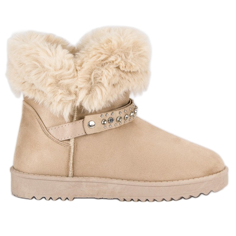 Mukluki charakteryzują się miękkim futerkiem, które nie tylko ociepla, ale także nadaje całości niezwykle przyjemny wygląd. Subtelny odcień brązu sprawia, że idealnie komponują się z różnorodnymi zimowymi stylizacjami, a ozdobne dżety dodają im szyku i nowoczesności.
