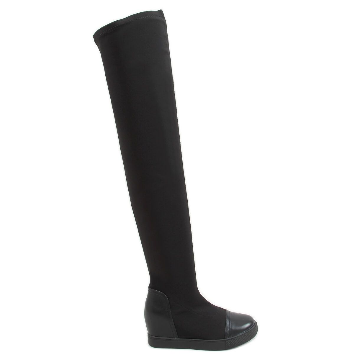 Szczegóły: Muszkieterki skarpetkowe na koturnie czarne HQ888 Black