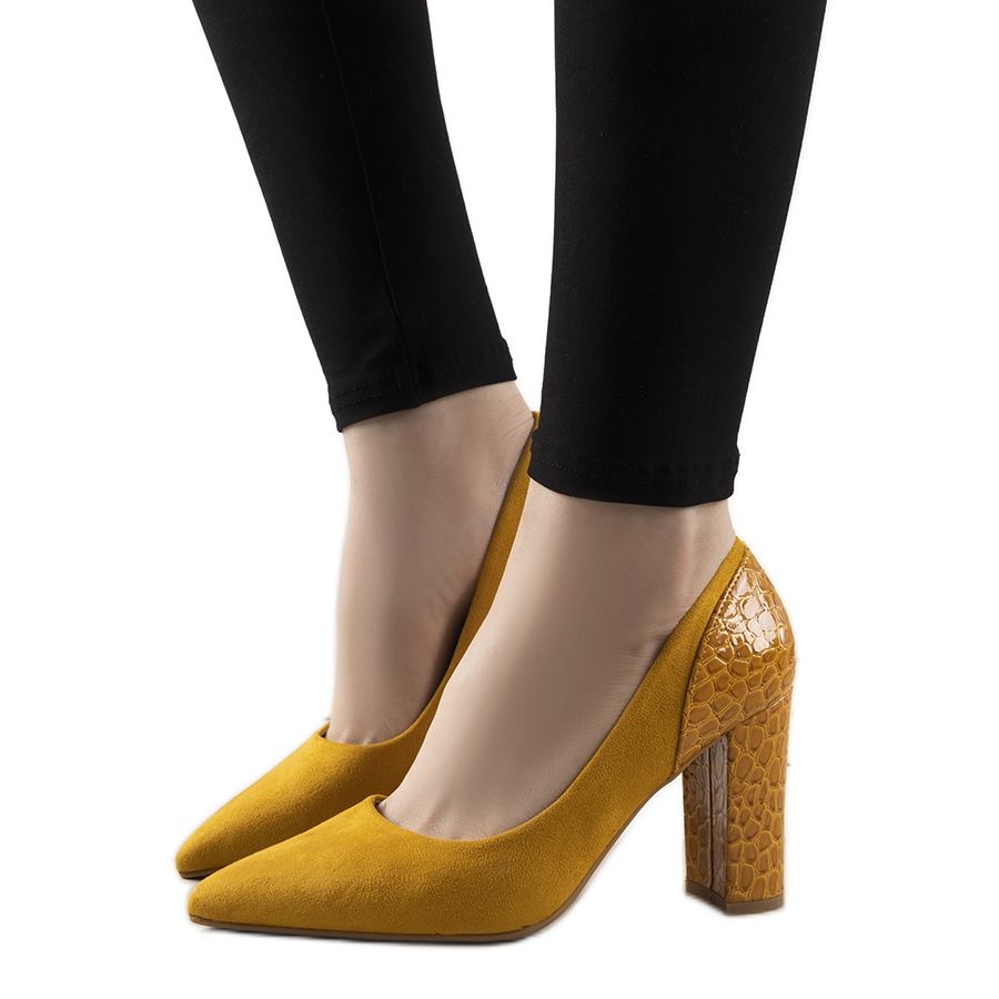 Szczegóły: Musztardowe czółenka na słupku Nutt żółte