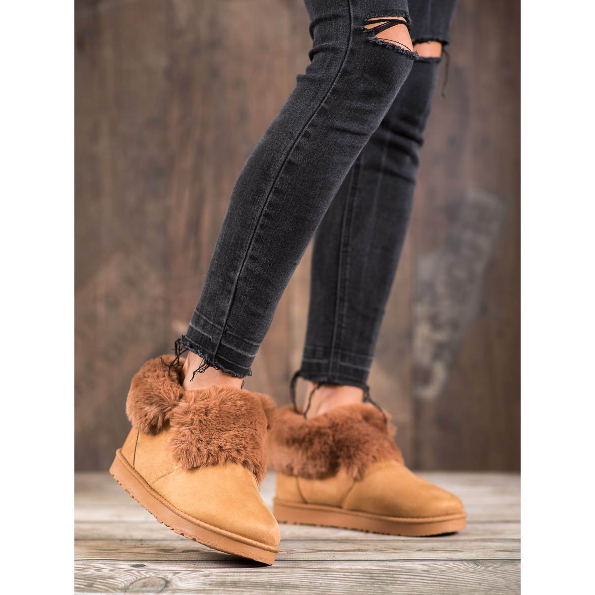 Szczegóły: Kylie Niskie Mukluki Z Futerkiem brązowe