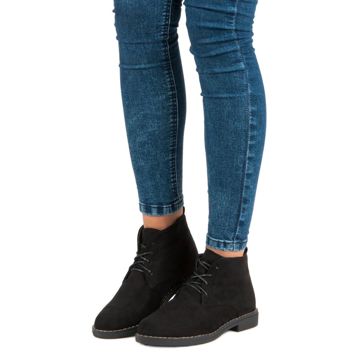 Szczegóły: Niskie Wiązane Botki czarne