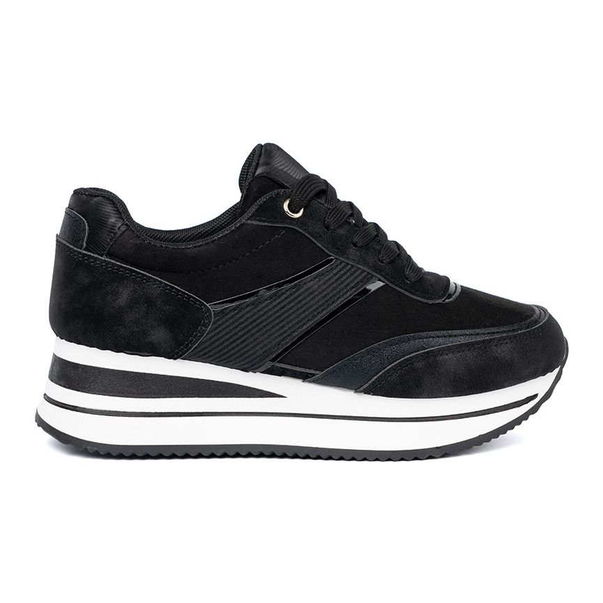 Odkryj nowoczesne czarne sneakersy od marki Shelvt, które łączą w sobie sportowy styl i modowe akcenty. Te wyjątkowe buty, przeznaczone dla kobiet, doskonale sprawdzą się na co dzień, oferując wygodę oraz elegancki wygląd. Wykonane z wysokiej jakości imituje skóry ekologicznej, prezentują się efektownie dzięki połyskującym wstawką, które dodają im charakteru.