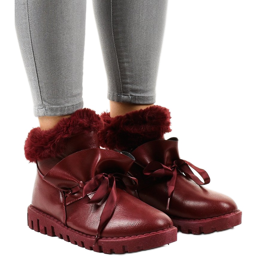 Inna marka Ocieplane bordowe trampki z suwakiem 428-6 czerwone