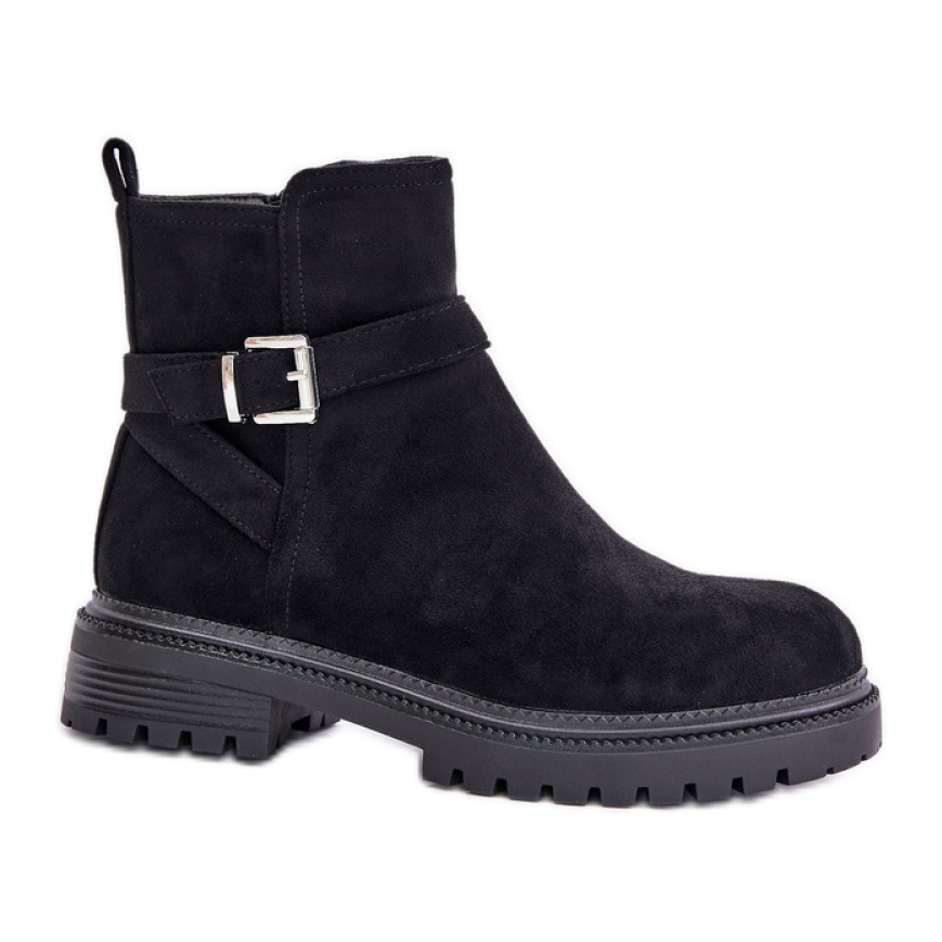 Szczegóły: Ocieplane botki damskie z klamrą Black czarne