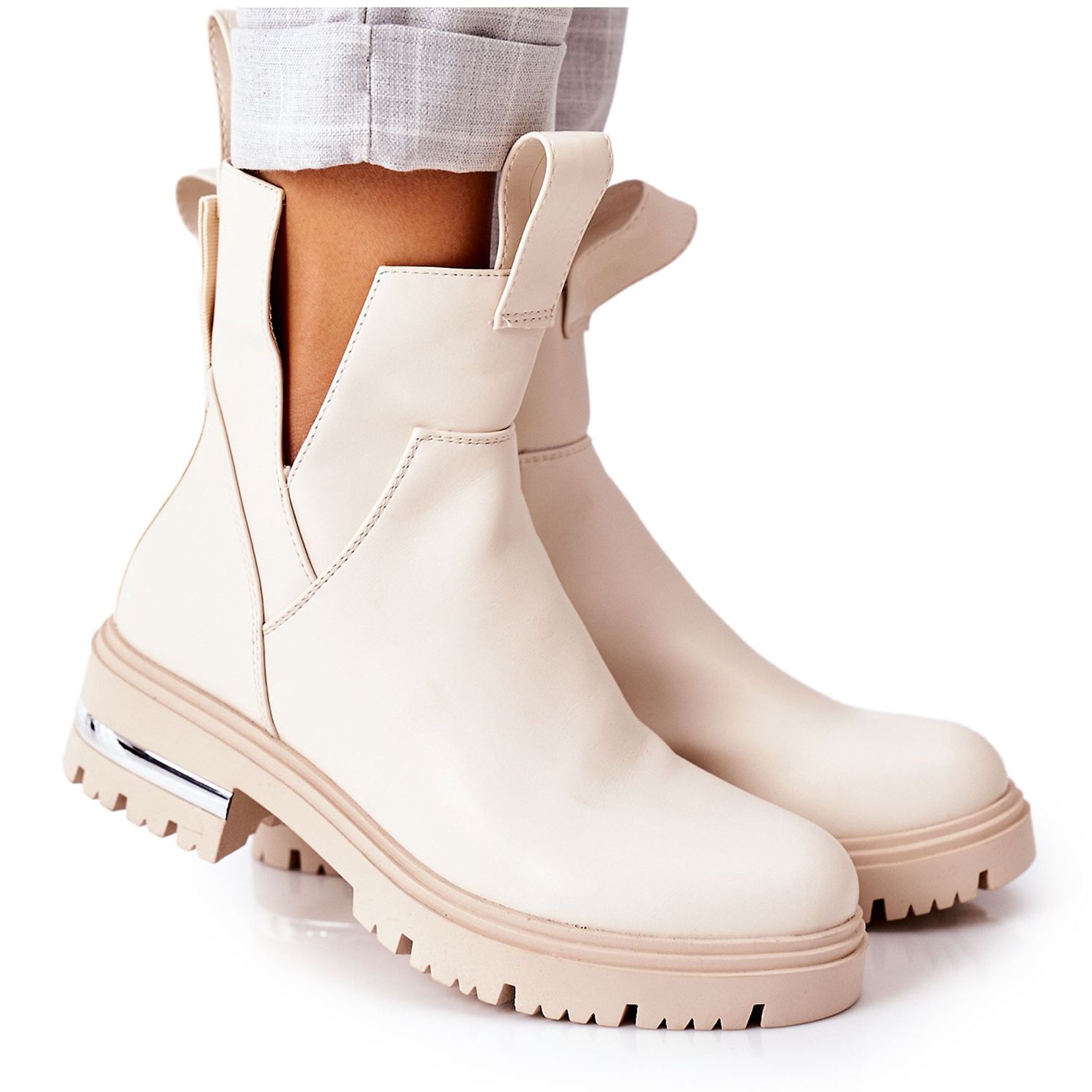 Szczegóły: PS1 Ocieplane Botki Sztyblety Beżowe Rock It beżowy