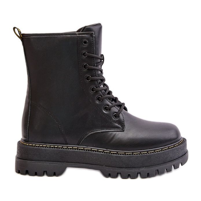 Inna marka Ocieplane Botki Workery z Eko Skóry Na Zamek Czarne Naleli