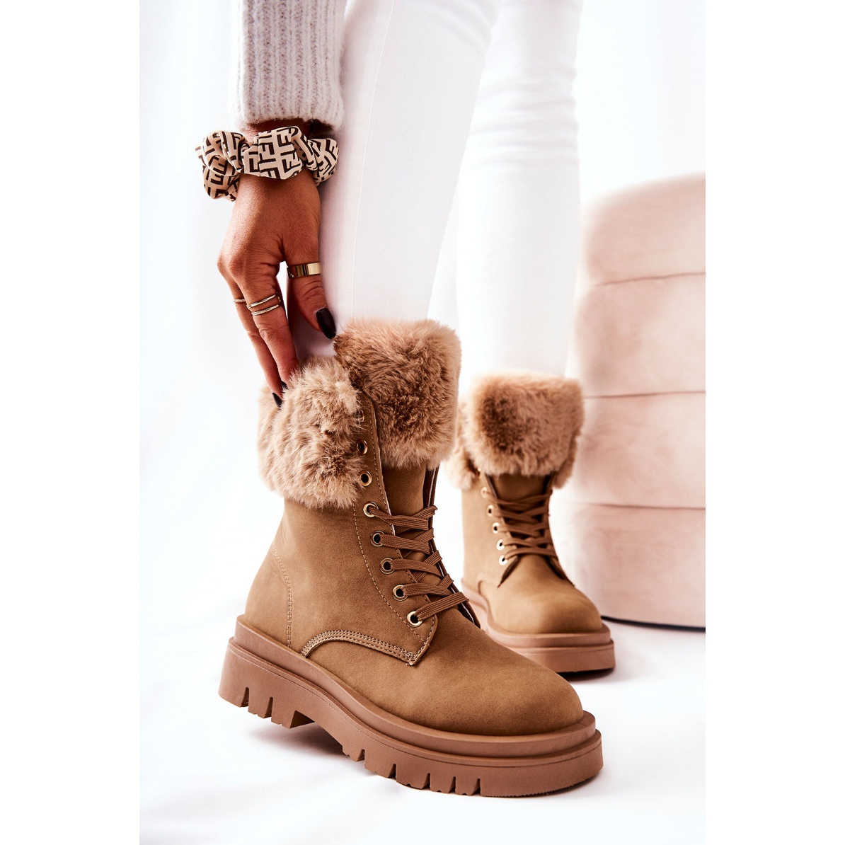 Inna marka Ocieplane Botki Z Futerkiem Beżowe Farley brązowe