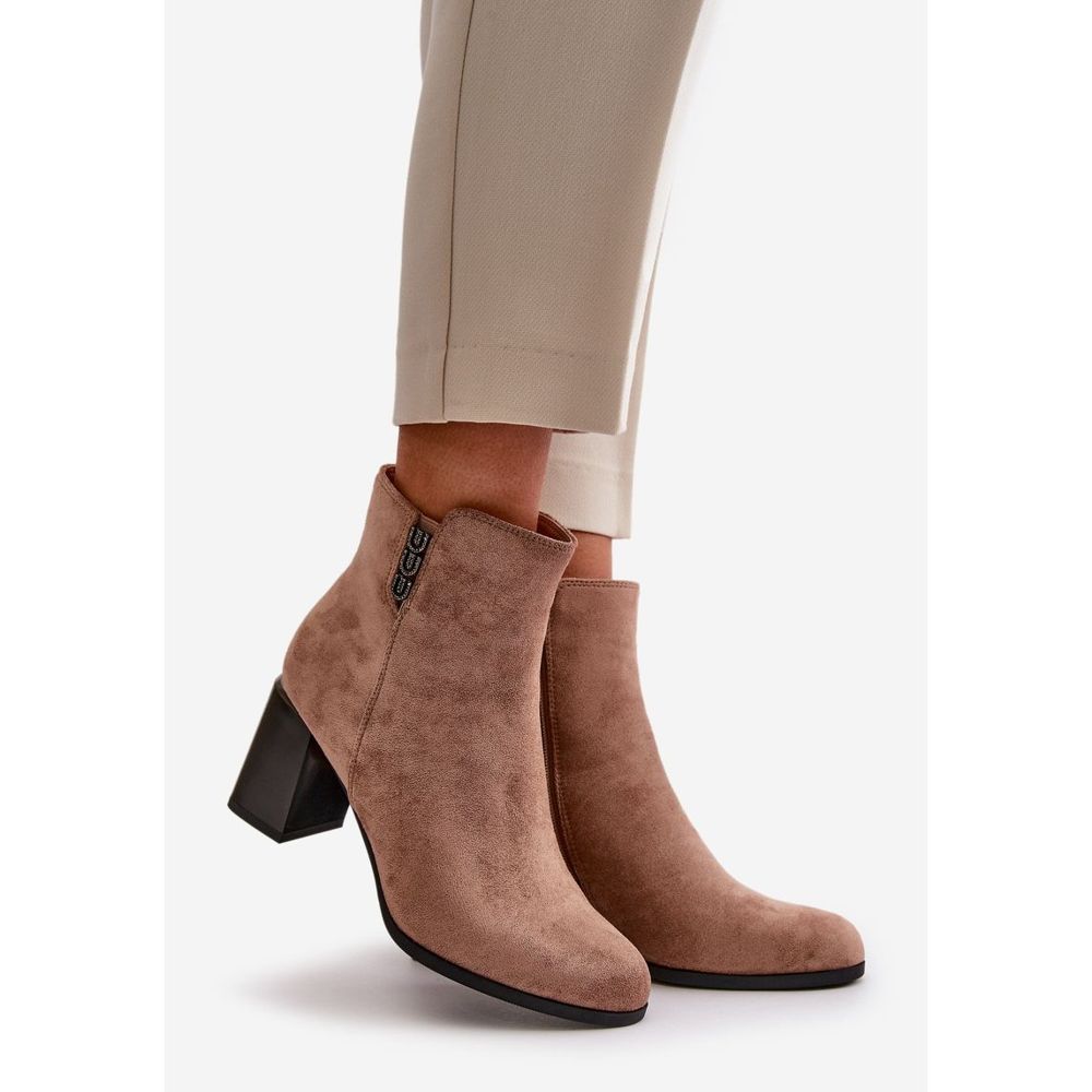 Inna marka Ocieplane Eko Zamszowe Botki Damskie Na Słupku Zapinane Na Zamek Brązowe Erillia beżowy